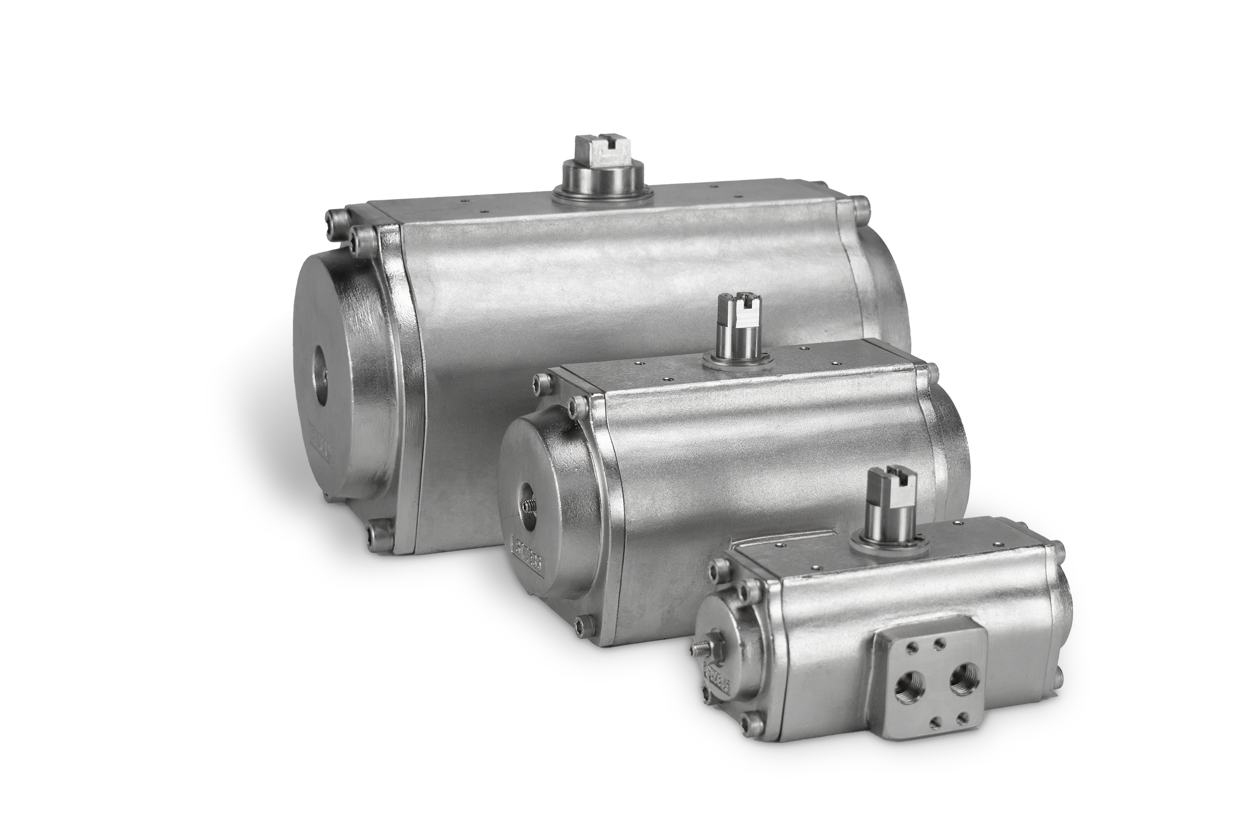 Die komplett aus Edelstahl gefertigte Schwenkantriebsserie PT eignet sich dank der Verwendung hochwertiger Edelstahllegierungen hervorragend für den Einsatz in aggressivsten Umgebungsbedingungen bzw. für Anwendungen unter strengen Hygienevorgaben.